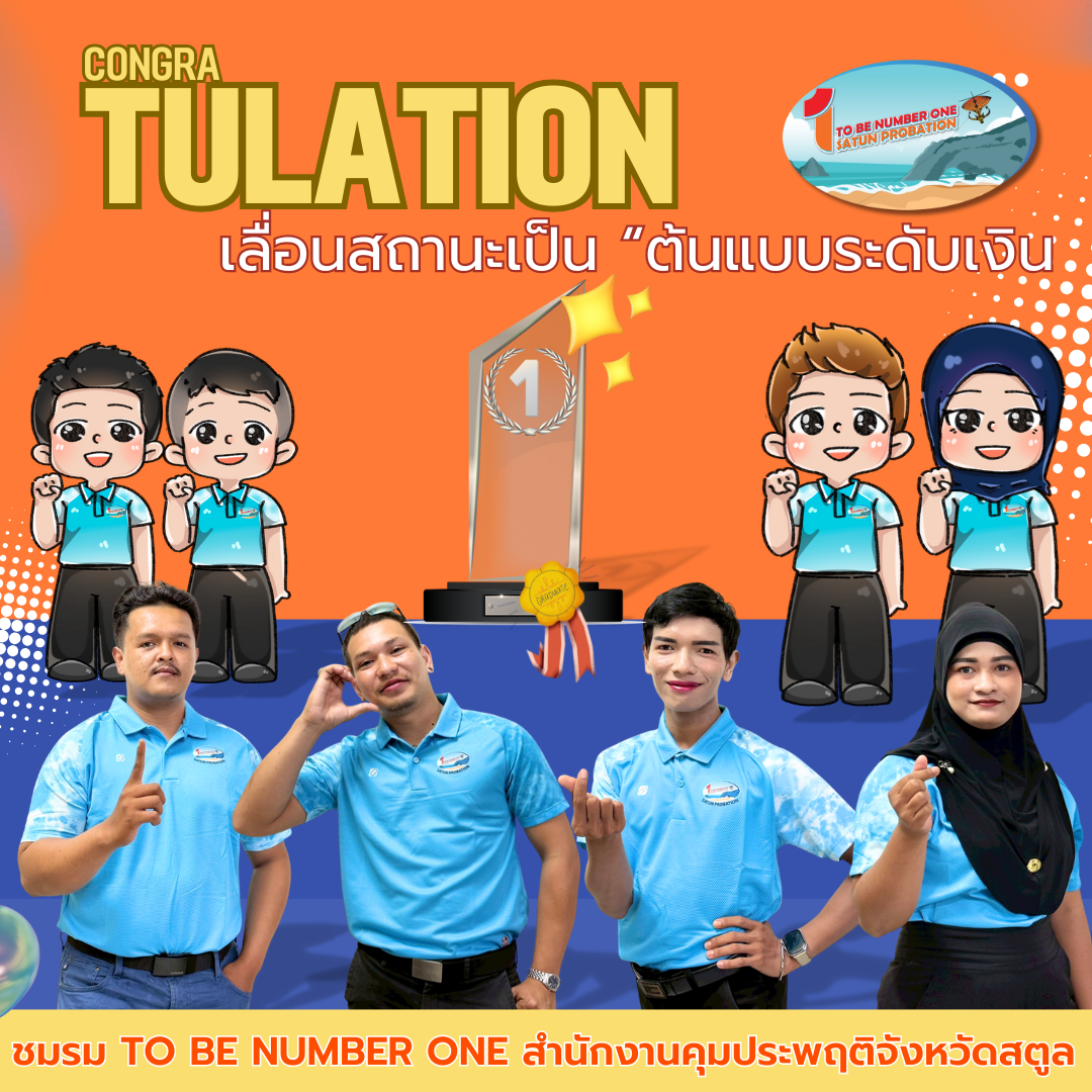 กรมคุมประพฤติ กระทรวงยุติธรรม โดยสำนักงานคุมประพฤติจังหวัดสตูล ภายใต้การนำของนางปฐมา เอียดบัว ผู้อำนวยการสำนักงานคุมประพฤติจังหวัดสตูล เมื่อวันที่ 16 ตุลาคม 2568 ชมรม TO BE NUMBER ONE สำนักงานคุมประพฤติจังหวัดสตูล ได้รับแจ้งผลการประกวดผลงานชมรม TO BE NUMBER ONE ระดับประเทศ ประจำปี 2568 โดยชมรม TO BE NUMBER ONE