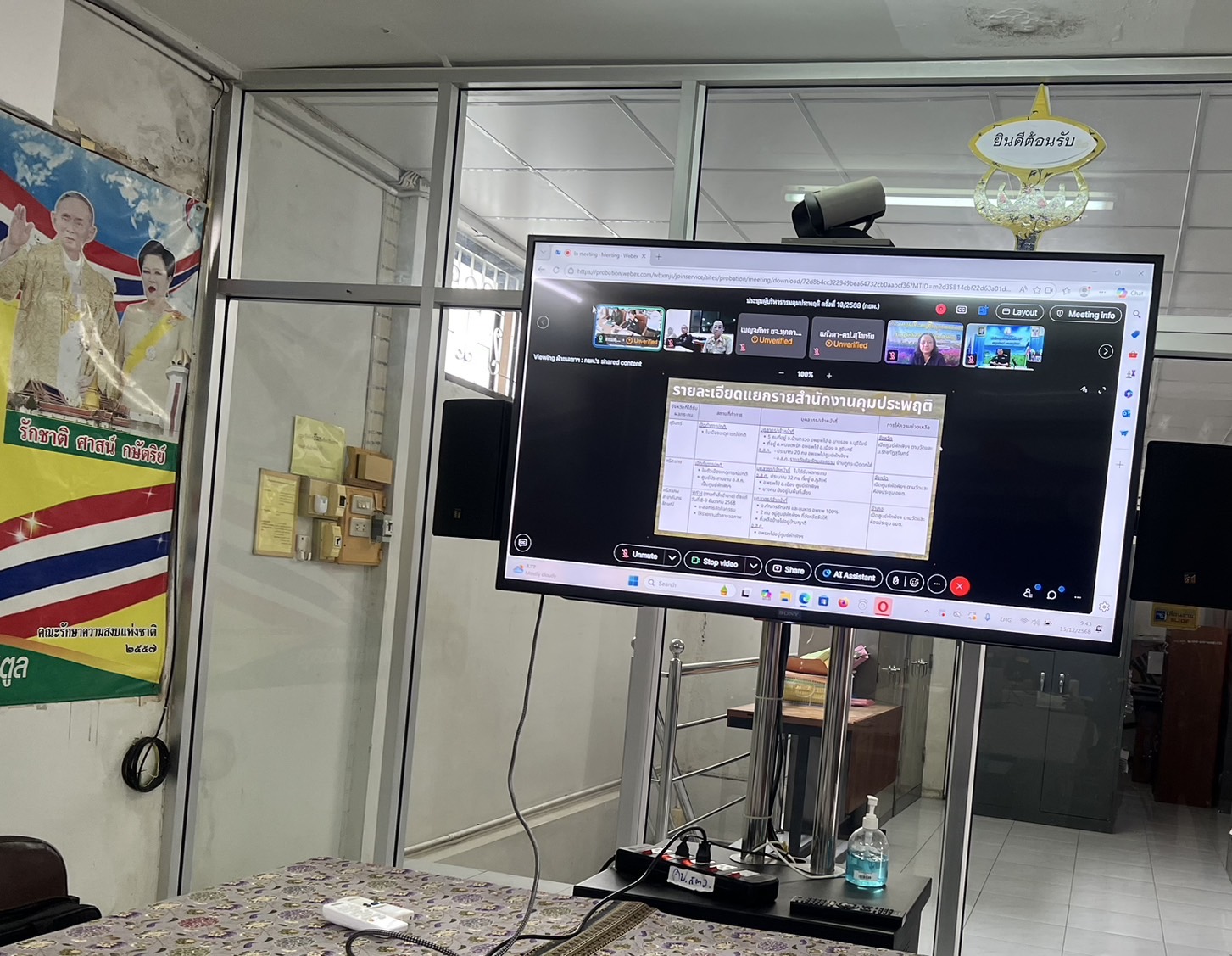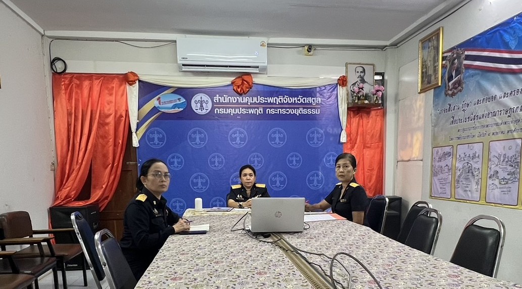 กรมคุมประพฤติ กระทรวงยุติธรรม โดยสำนักงานคุมประพฤติจังหวัดสตูล วันที่ 15 ธันวาคม 2568 นางปฐมา เอียดบัว ผู้อำนวยการสำนักงานคุมประพฤติจังหวัดสตูล พร้อมด้วยหัวหน้ากลุ่มคุมประพฤติพื้นที่ หัวหน้าฝ่ายบริหารงานทั่วไป เข้าร่วมประชุมผู้บริหารกรมคุมประพฤติ ครั้งที่ 10/2568 ประจำเดือนธันวาคม 2568 ผ่านทางรูปแบบการประชุมทางไกล (Online Conference) โดยมีร้อยตำรวจเอกปิยะ รักสกุล อธิบดีกรมคุมประพฤติ เป็นประธานการประชุม ณ ห้องประชุมสำนักงานคุมประพฤติจังหวัดสตูล ตำบลพิมาน อำเภอเมืองสตูล จังหวัดสตูล