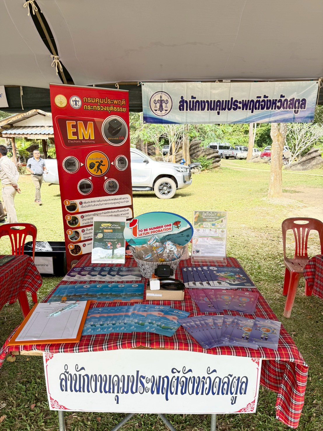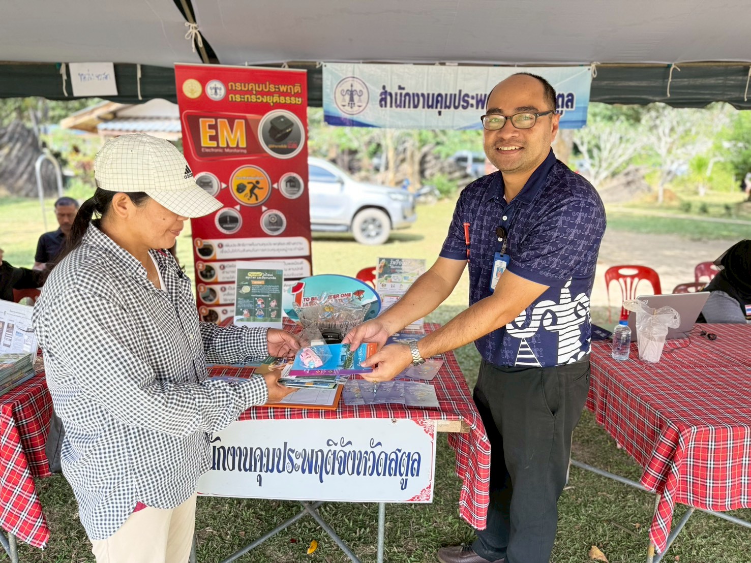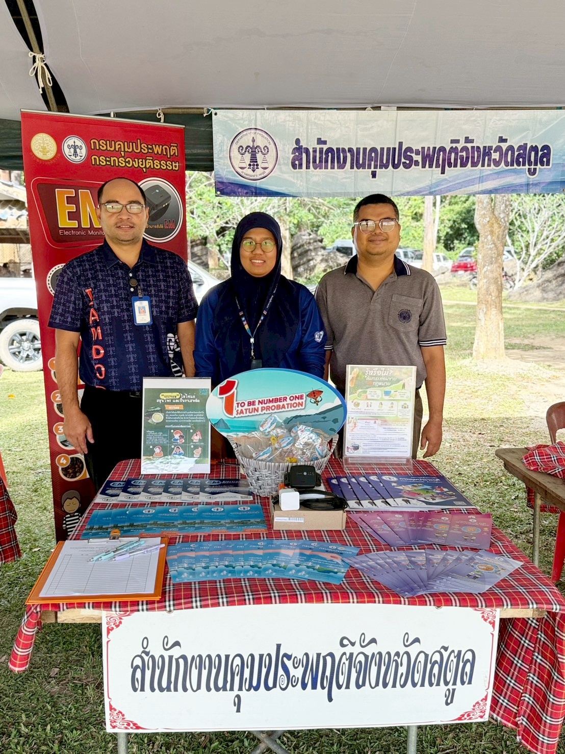 กรมคุมประพฤติ กระทรวงยุติธรรม โดยสำนักงานคุมประพฤติจังหวัดสตูล วันที่ 8 มกราคม 2569 นางปฐมา เอียดบัว ผู้อำนวยการสำนักงานคุมประพฤติจังหวัดสตูล มอบหมายให้กลุ่มยุทธศาสตร์การคุมประพฤติ ร่วมออกหน่วยโครงการจังหวัดเคลื่อนที่ "หน่วยบำบัดทุกข์ บำรุงสุข สร้างรอยยิ้มให้ประชาชน" จังหวัดสตูล ครั้งที่ 1 ประจำปี 2569 ณ โรงเรียนบ้านป่าพน หมู่ที่ 6 ตำบลปาล์มพัฒนา อำเภอมะนัง จังหวัดสตูล โดยมีนายคณิต คงช่วย ผู้ว่าราชการจังหวัดสตูล เป็นประธานในพิธีเปิดโครงการ ในการนี้ สำนักงานคุมประพฤติจังหวัดสตูลได้ให้บริการความรู้แก่ประชาชนเกี่ยวกับบทบาทและภารกิจของกระทรวงยุติธรรม ภารกิจของกรมคุมประพฤติ การกำกับดูแลผู้ถูกคุมความประพฤติ การใช้อุปกรณ์อิเล็กทรอนิกส์ติดตามตัว (Electronic Monitoring : EM) ความรู้เกี่ยวกับพิษภัยและโทษของยาเสพติด ตลอดจนการประชาสัมพันธ์การดำเนินงานของชมรม TO BE NUMBER ONE สำนักงานคุมประพฤติจังหวัดสตูล ตามยุทธศาสตร์ที่ 1 การรณรงค์ ปลุกจิตสำนึก และสร้างกระแสนิยมที่เอื้อต่อการป้องกันและแก้ไขปัญหายาเสพติด