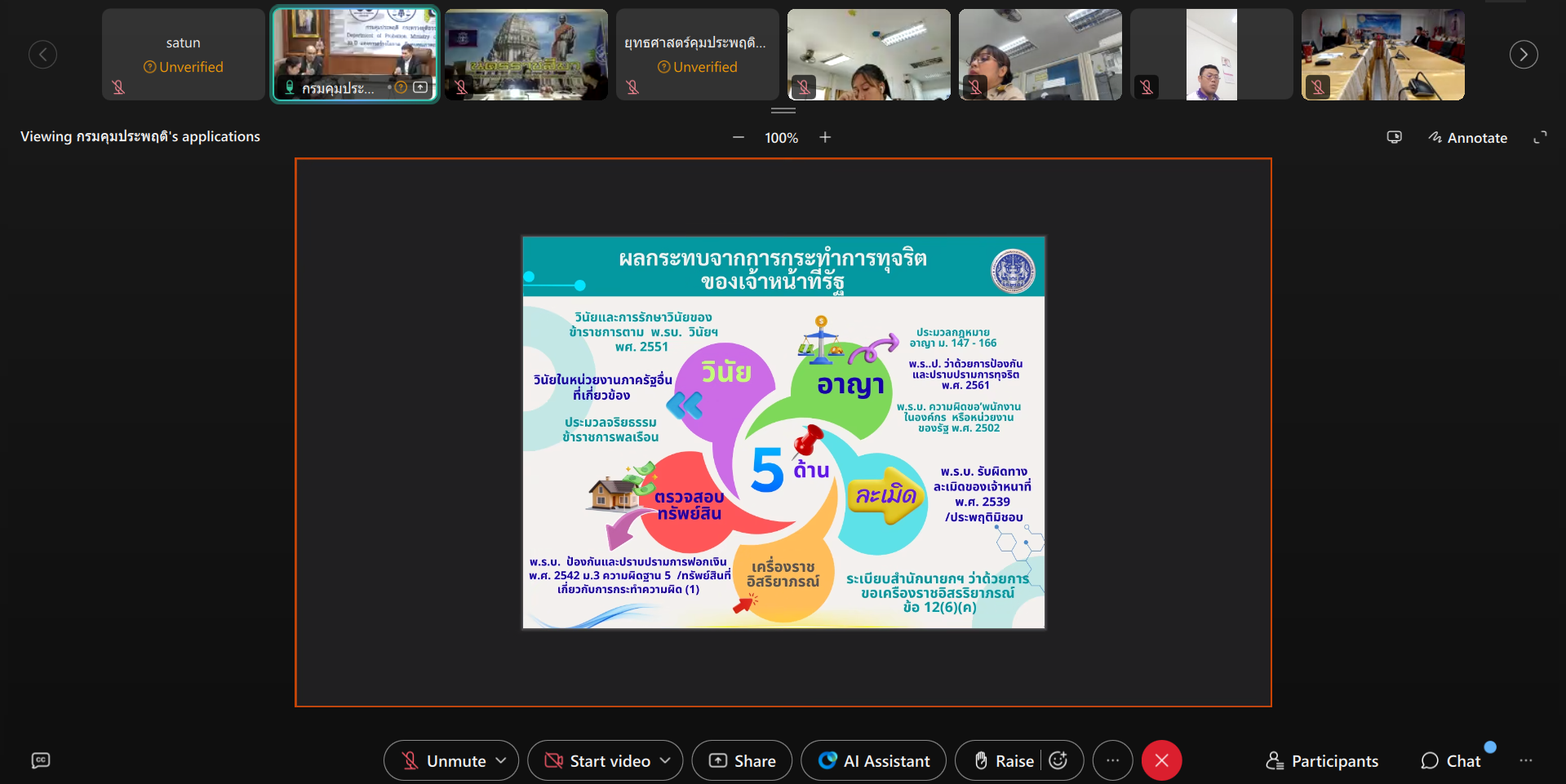 กรมคุมประพฤติ กระทรวงยุติธรรม โดยสำนักงานคุมประพฤติจังหวัดสตูล วันที่ 28 มกราคม 2569 นางปฐมา เอียดบัว ผู้อำนวยการสำนักงานคุมประพฤติจังหวัดสตูล พร้อมด้วยเจ้าหน้าที่สำนักงานฯ เข้าร่วมอบรมเสริมสร้างความรู้ด้านการป้องกันและปราบปรามการทุจริตในภาครัฐ และการจัดการผลประโยชน์ทับซ้อน เพื่อสร้างความตระหนักรู้เกี่ยวกับปัญหาการทุจริตและผลประโยชน์ทับซ้อน ซึ่งถือเป็นรูปแบบหนึ่งของการทุจริตคอร์รัปชัน อันส่งผลกระทบต่อความโปร่งใส ความเป็นธรรม และประโยชน์ส่วนรวมขององค์กรและสังคมการอบรมดังกล่าวมีวัตถุประสงค์เพื่อเสริมสร้างองค์ความรู้และเพิ่มศักยภาพของบุคลากรด้านการป้องกันการทุจริต ให้สามารถนำความรู้ไปปรับใช้ในการปฏิบัติหน้าที่ได้อย่างมีประสิทธิภาพ โดยมีท่านสิทธิ สุธีวงศ์ รองอธิบดีกรมคุมประพฤติ เป็นประธานในพิธีเปิดโครงการ และได้รับเกียรติจากวิทยากรผู้ทรงคุณวุฒิจากสำนักงาน ป.ป.ท. ร่วมถ่ายทอดความรู้และแลกเปลี่ยนประสบการณ์ ในรูปแบบออนไลน์ ผ่านระบบ Webex Meeting ณ สำนักงานคุมประพฤติจังหวัดสตูล ตำบลพิมาน อำเภอเมืองสตูล จังหวัดสตูล