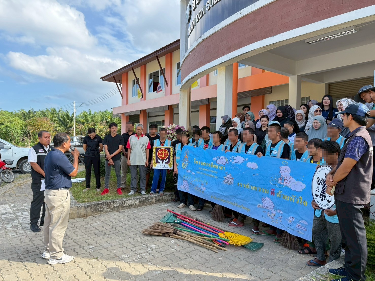 กรมคุมประพฤติ กระทรวงยุติธรรม โดยสำนักงานคุมประพฤติจังหวัดสตูล วันที่ 11 กุมภาพันธ์ 2569 นางปฐมา เอียดบัว ผู้อำนวยการสำนักงานคุมประพฤติจังหวัดสตูล มอบหมายให้กลุ่มยุทธศาสตร์การคุมประพฤติและกลุ่มคุมประพฤติพื้นที่ จัดโครงการพัฒนาการทำงานบริการสังคมเพื่อการแก้ไขฟื้นฟูผู้กระทำผิด ณ องค์การบริหารส่วนตำบลควนโดน อำเภอควนโดน จังหวัดสตูล โดยร่วมกันทำความสะอาดรอบหมู่บ้านตำบลควนโดน เพื่อกระตุ้นให้ผู้กระทำผิดตระหนักถึงความรับผิดชอบ และมีจิตสำนึกต่อผู้อื่นและสังคม ตลอดจน เป็นการบูรณาการความร่วมมือกับหน่วยงานภาครัฐและภาคประชาสังคม ทั้งนี้ มีผู้ถูกคุมความประพฤติ อาสาสมัครคุมประพฤติ ภาคีเครือข่าย และเจ้าหน้าที่สำนักงานฯ เข้าร่วม จำนวน 36 คน